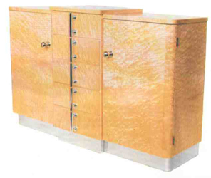 in Massivholz, furniert mit Vogelaugenahorn. Zwei abgerundete Türen